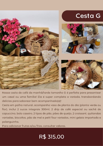 Nossa cesta de café da manhã/tarde tamanho G é perfeita para presentear
