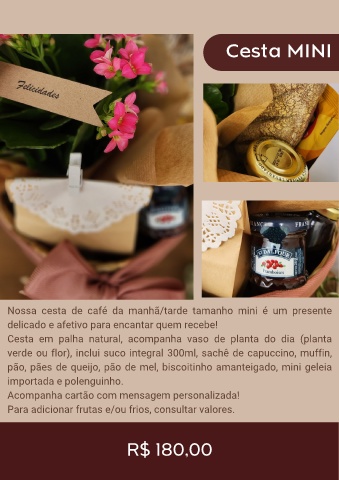 verde ou flor), inclui suco integral 300ml, sachê de capuccino, muffin,
